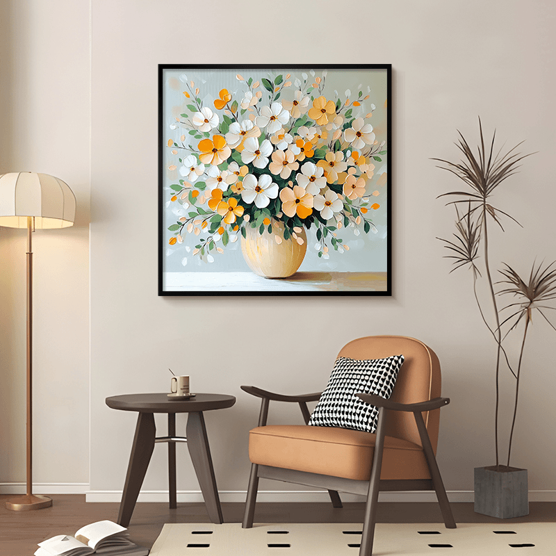 Luxury Handcrafted Texture Floral Wall Art Modern Vase Painting for Living Room Sofa Background